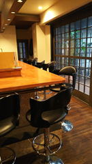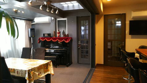 【パーティースペース】 カウンター席とテーブル席の境を無くし、 15名様程度のパーティー会場となります。 ピアノやPAの設備も整っているので、 ミニコンサートにもご利用頂けます。